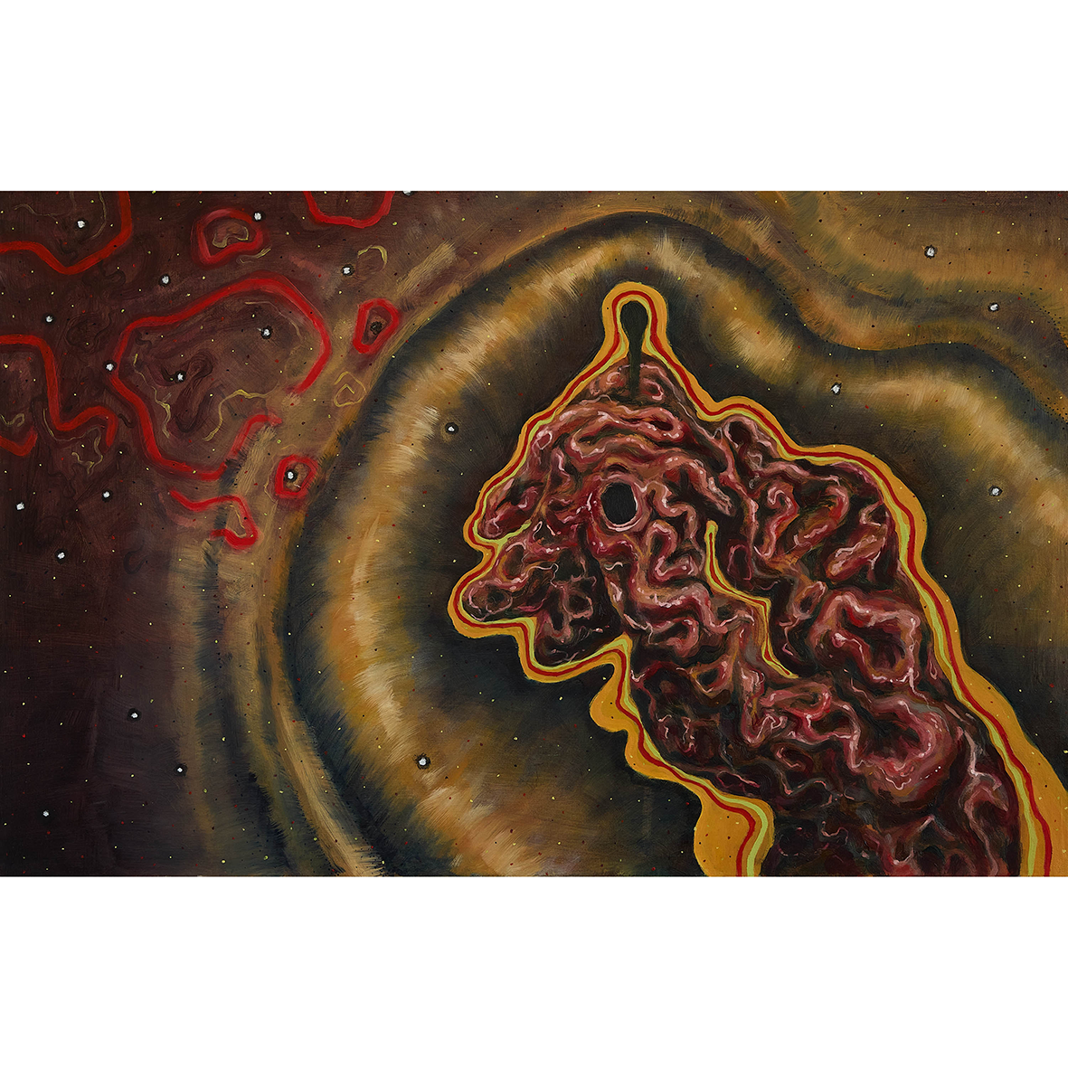 Amelia Maresh (b. 2005) is a Czech-Australian artist who lives and works on Bidgigal and Gadigal Land in Sydney, NSW. Working primarily in oil paint, Maresh’s practice examines the experience of warped-perception and abjection. Her works combine natural and surreal forms to create dreamlike compositions that reflect the artist’s experience living with Visual Snow Syndrome. Maresh attained her Bachelor of Fine Art at the National Art School, graduating in 2025 and has exhibited in a range of groups shows (IGS Grad Show– 2022, Skeleton Project– 2023, Whiplash– 2025) as well as recently curating her own solo show (For the Sea– 2025).