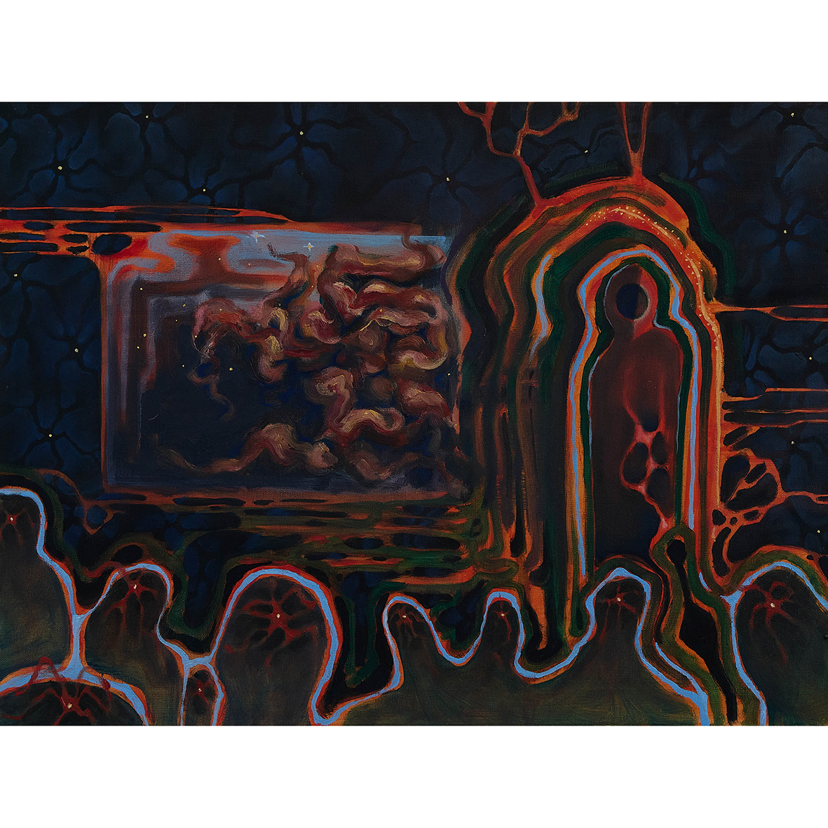Amelia Maresh (b. 2005) is a Czech-Australian artist who lives and works on Bidgigal and Gadigal Land in Sydney, NSW. Working primarily in oil paint, Maresh’s practice examines the experience of warped-perception and abjection. Her works combine natural and surreal forms to create dreamlike compositions that reflect the artist’s experience living with Visual Snow Syndrome. Maresh attained her Bachelor of Fine Art at the National Art School, graduating in 2025 and has exhibited in a range of groups shows (IGS Grad Show– 2022, Skeleton Project– 2023, Whiplash– 2025) as well as recently curating her own solo show (For the Sea– 2025).