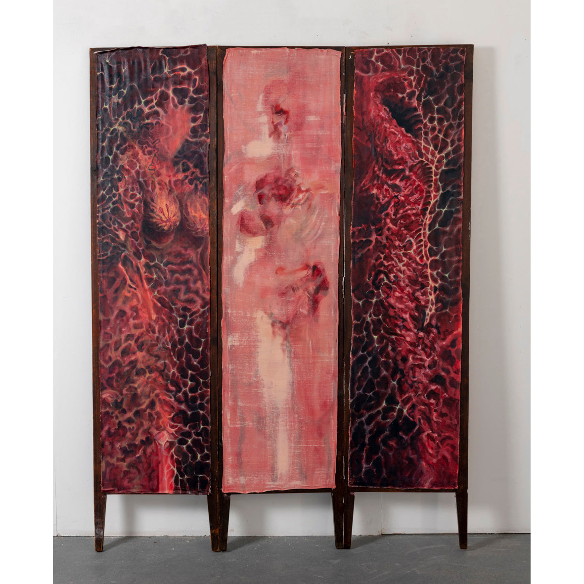 Amelia Maresh (b. 2005) is a Czech-Australian artist who lives and works on Bidgigal and Gadigal Land in Sydney, NSW. Working primarily in oil paint, Maresh’s practice examines the experience of warped-perception and abjection. Her works combine natural and surreal forms to create dreamlike compositions that reflect the artist’s experience living with Visual Snow Syndrome. Maresh attained her Bachelor of Fine Art at the National Art School, graduating in 2025 and has exhibited in a range of groups shows (IGS Grad Show– 2022, Skeleton Project– 2023, Whiplash– 2025) as well as recently curating her own solo show (For the Sea– 2025).