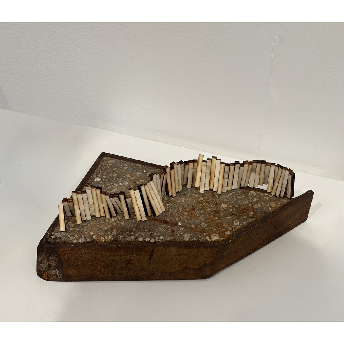 burnt poplar, wire, ready-made plinth