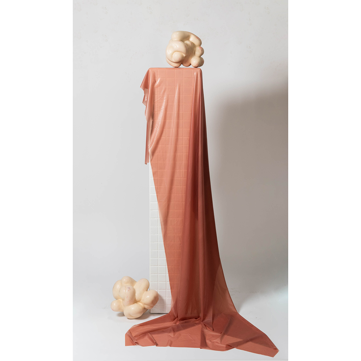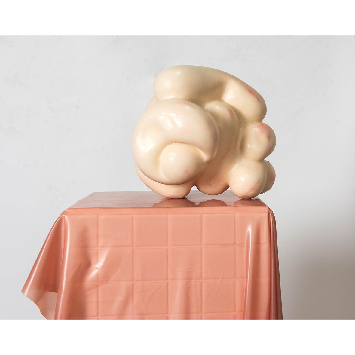 Found ceramic tiles, found latex sheet, plaster, paraffin wax, oil paint