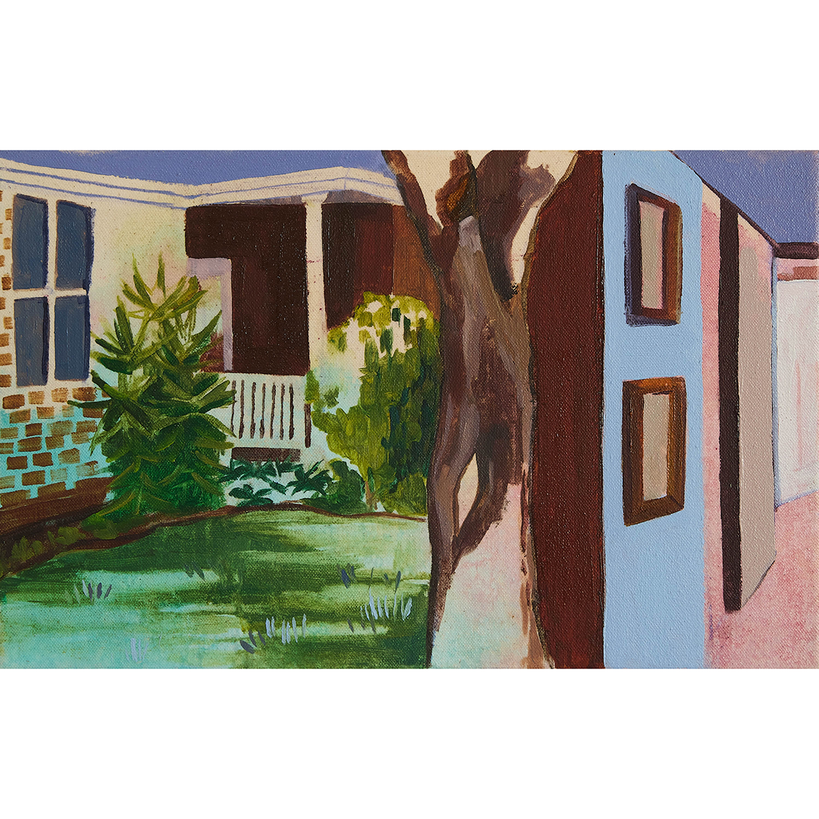 Leah Zhang (b. 2005) is a Sydney-born artist living and working on Bidjigal and Gadigal land. Zhang’s works derive from comprehending the world around her, the dynamics between the familiar and unfamiliar, thinking about how opposites coincide with one another and not apart. She explores this through the public and private spaces of suburbia, producing composite paintings of 'inside outside' spaces. Her works invite the audiences to configure themselves inside the paintings, questioning their innate nature and to ask what bounds them to their personal spaces.