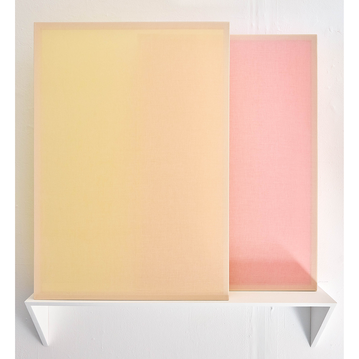 synthetic polymer paint on wood, muslin cotton, coloured cellophane