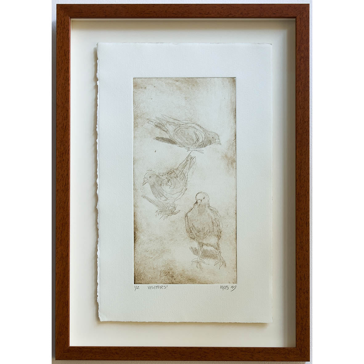 Born, raised and practicing on Gadigal land, Olivia King (b. 2003) has a background in both graphic design and the fine arts. Having completed a Cert IV and a Diploma of Graphic Design at TAFE in 2022 and now majoring in Printmaking at the National Art School in her Bachelor of Fine Arts, King aims to integrate her knowledge of digital media with her love of copper etching, alongside her longstanding affection for birds.