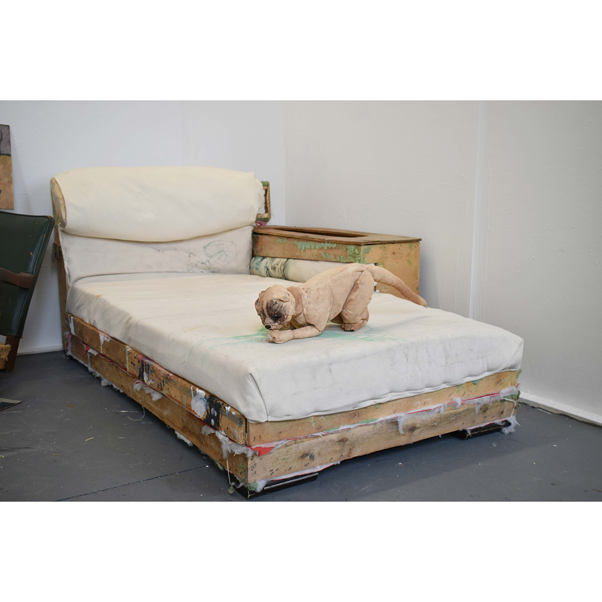 synthetic polymer paint on stretched canvas, couch, frame, foam