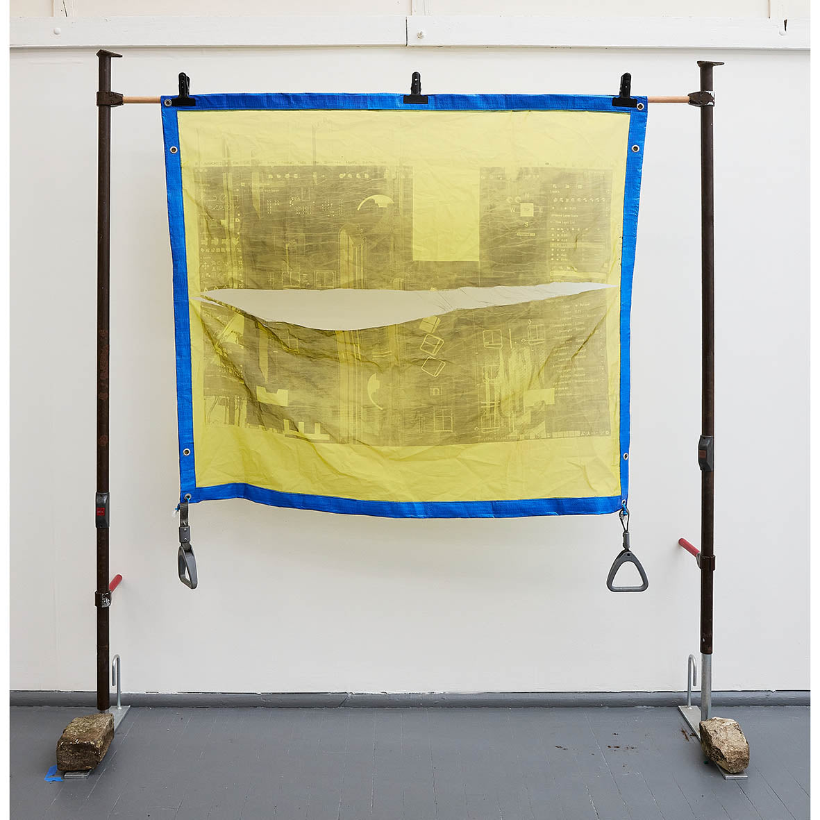 silk screen, tarpaulin, metal poles
